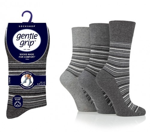 Bavlněné dámské ponožky s jemným lemem Gentle Grip v praktickém šedém provedení s jemnými proužky.