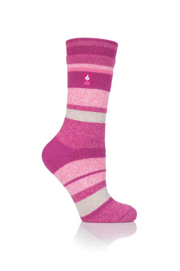 Středně silné termoizolační ponožky Heat Holders s růžovými proužky, které poskytují vynikající termoizolační ochranu a pohodlí chodidla i v tenší -medium síle úpletu, čímž jsou vhodné i do běžné obuvi.
