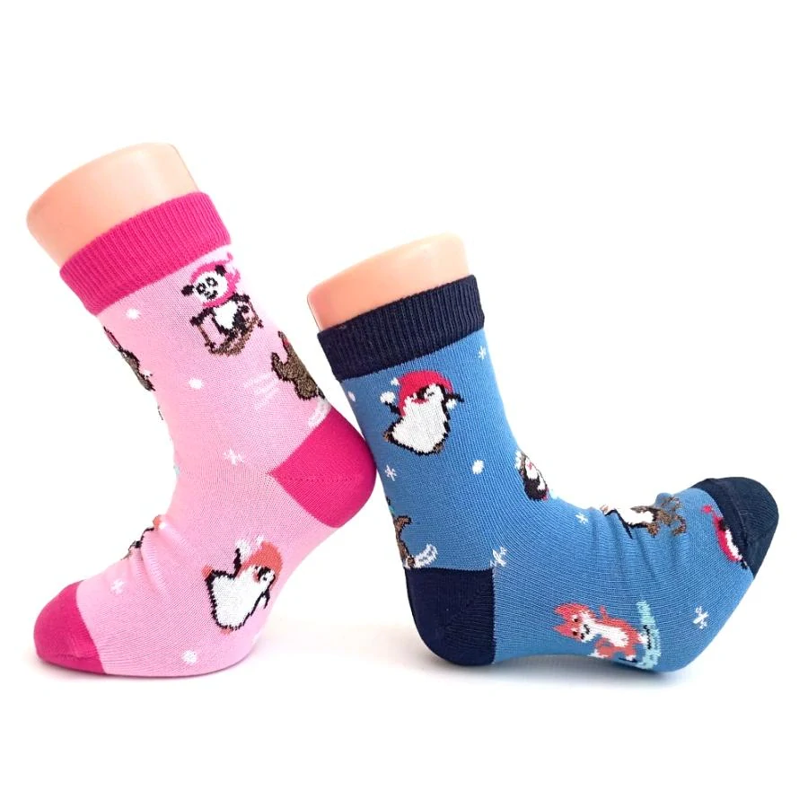 Dětské bavlněné ponožky se zvířátky hrajícími si ve sněhu