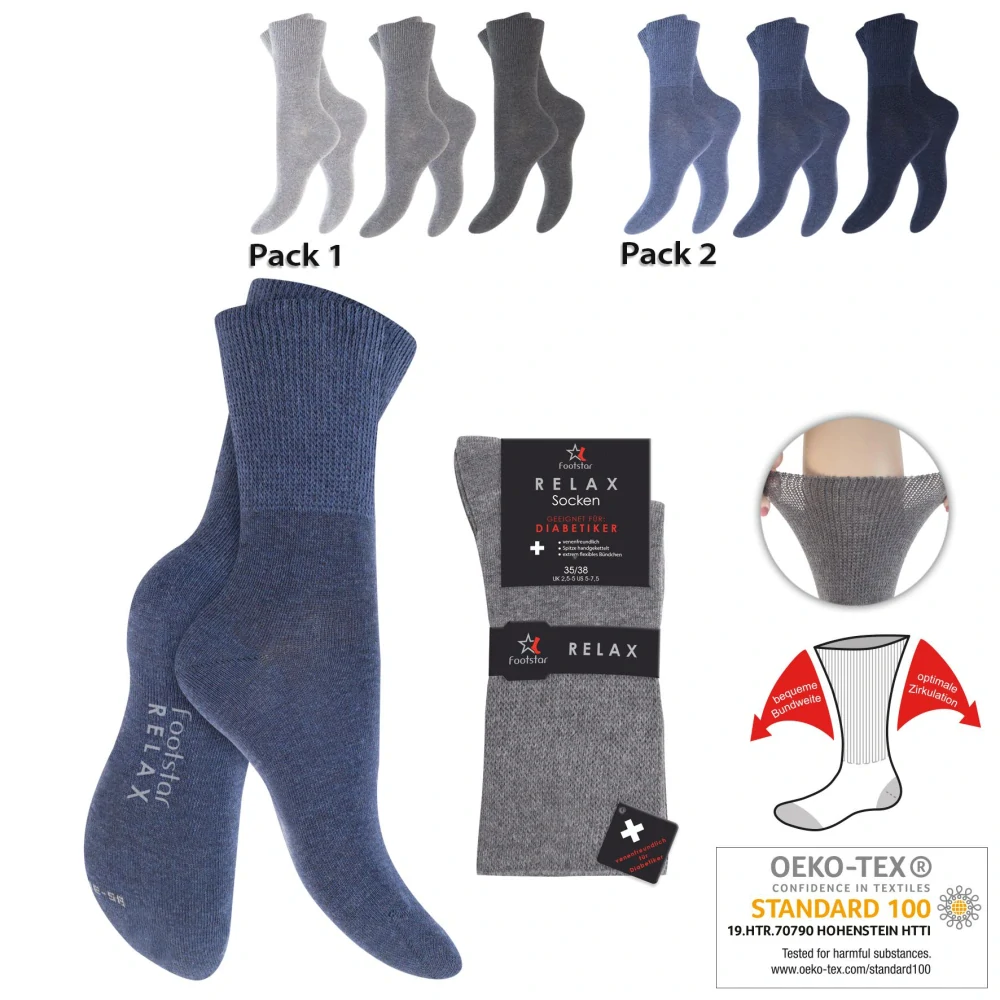 Dámské a pánské ponožky s volným a velmi roztažným lemem vhodné pro diabetiky.