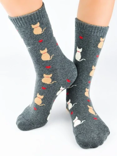 Klasické froté ponožky s moc pěkně vypletenými kočičkami nejen že zahřejí v chladných dnech, ale díky vysokému obsahu bavlny a froté úpletu jsou velmi příjemné na nošení. K dobrému pocitu při nošení přispívají i ploché švy v oblasti špičky, které netlačí na prsty a komfortní lem nezpůsobující otlaky.