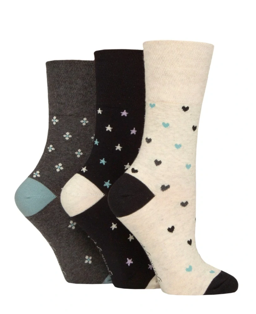 Jemné bavlněné ponožky se srdíčky, hvězdičkami a čtyřlístky a s jemným nesvíravým lemem Gentle Grip. Ponožky mají perfektně sladěné barvy a díky použité kvalitní bavlně a pohodlným lemům, které nezpůsobují otlaky, jsou velmi příjemné na nošení. Kupte si je pro jejich pohodlí a noste pro vaši zábavu.
