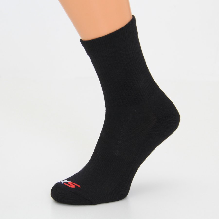 Sportovní polofroté ponožky z modalového vlákna určené pro sport a volný čas. Ponožky mají froté chodidlo, které zajišťuje měkký došlap a přispívá tak k pohodlí při nošení i při zvýšené fyzické zátěži. Vyšší sportovní lem výborně fixuje ponožku na chodidle a odlehčený úplet na nártu umožňuje chodidlu lépe "dýchat" a pomáhá lépe odvádět pot od pokožky. Ponožky jsou vhodné zejména pro halové sporty, ale i na běžné nošení. Výborně se osvědčily v cyklistických tretrách.