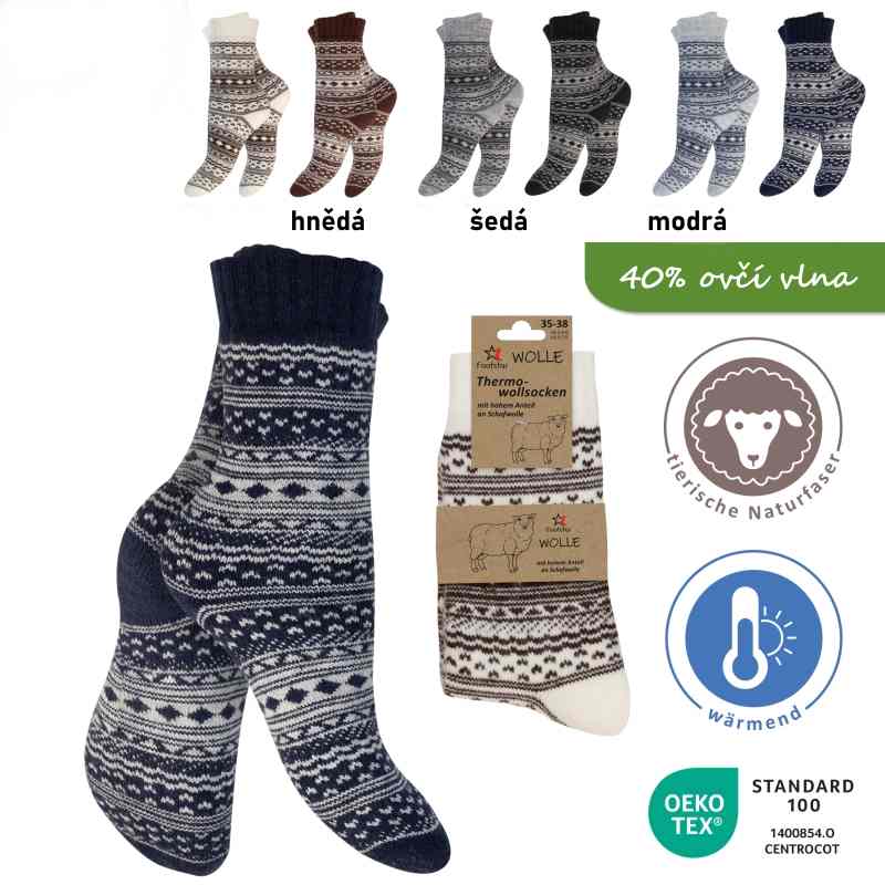 Vlněné dámské a pánské termo ponožky s norským vzorem a s vysokým podílem ovčí vlny.