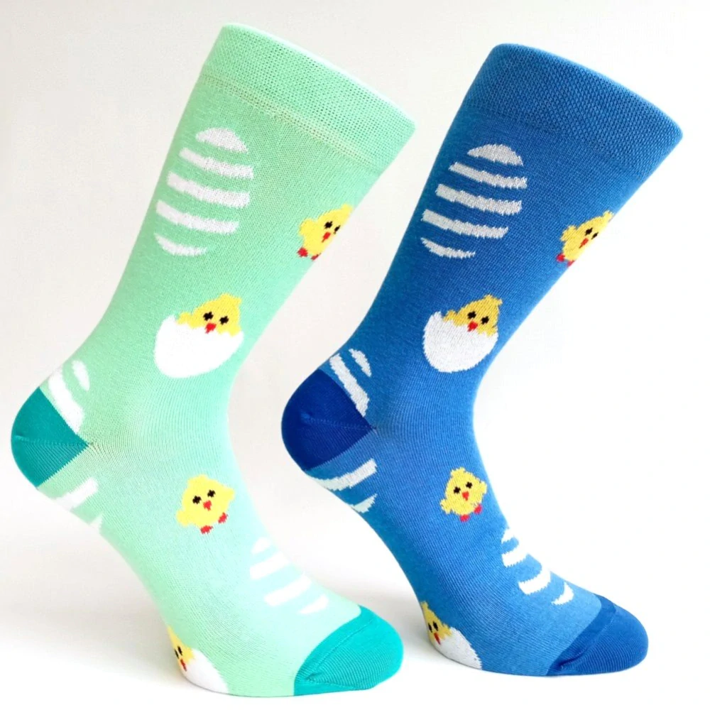 Veselé velikonoční ponožky české výroby v dámské i pánské velikosti. Velikonoce vyladěné do posledního detailu a perfektní dárek pro vaše blízké nebo kamarády. Veselé barevné ponožky s jarními motivy vajíček a kuřátek.