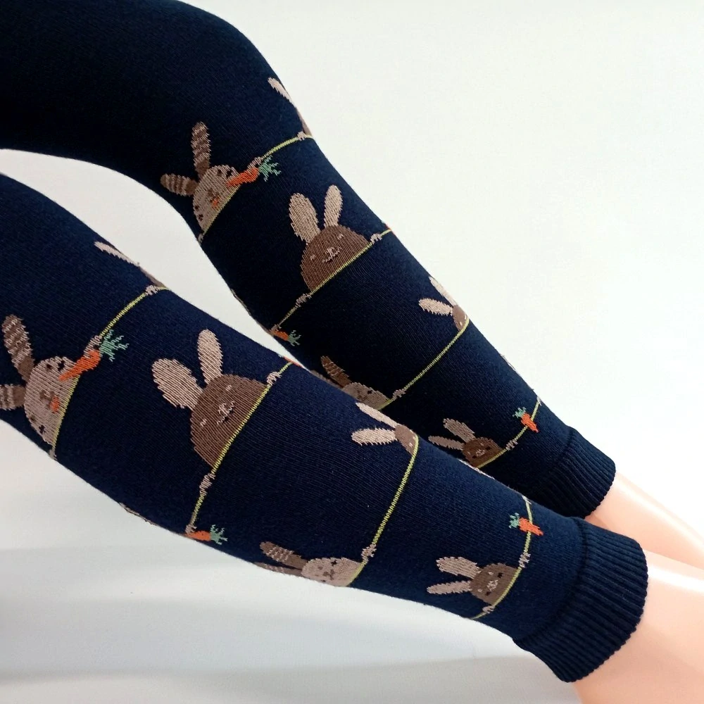Bavlněné legínky s pěkně vypletenými obrázky zajíčků s mrkvičkou v divčí růžové nebo pro kluky v tmavě modré a ebenové.